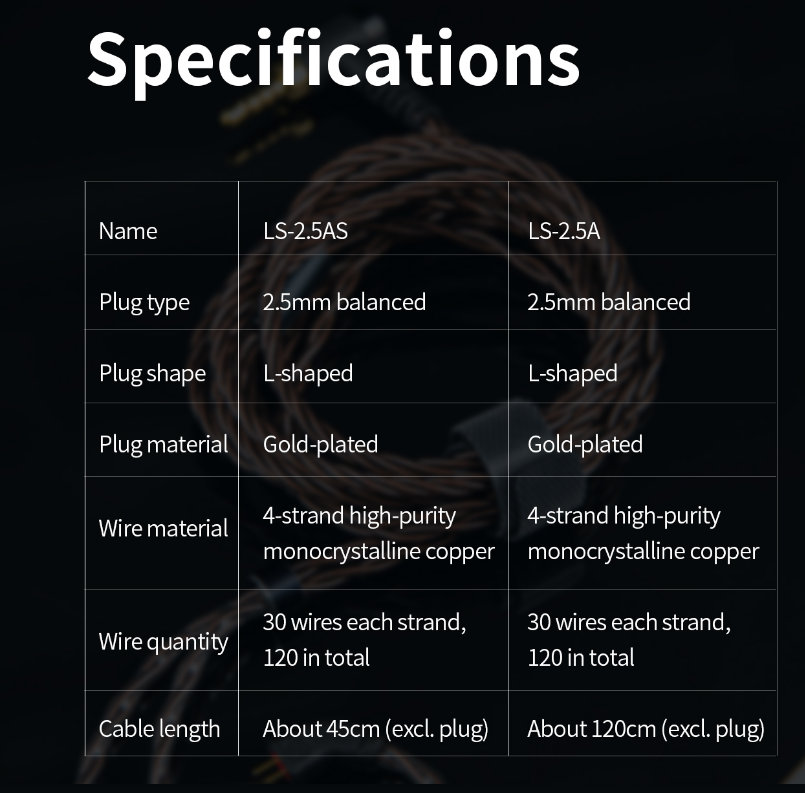 When connected to players or headphone amplifiers, the LS-2.5A cable (about 120 cm) would be a better partner for you to enjoy high-qulity music.