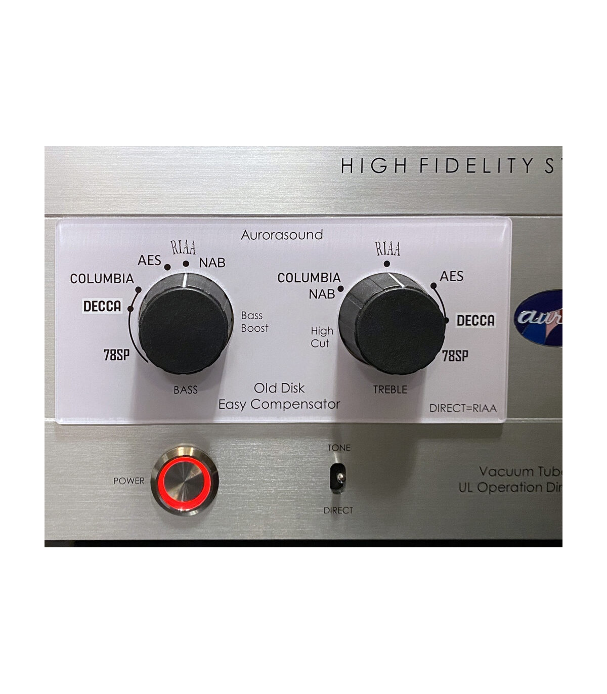 NOTE: You will find free of charge included with the amplifier the optional front plate that allows to set the typical equalization curves suitable for the different types of vinyl recordings and not only: 78rpm records, DECCA, Lp-Columbia, AES and NAB. Also the CD digital signal may be compensated to obtain the perfect timbre balance (you may find the front plate in the image section).