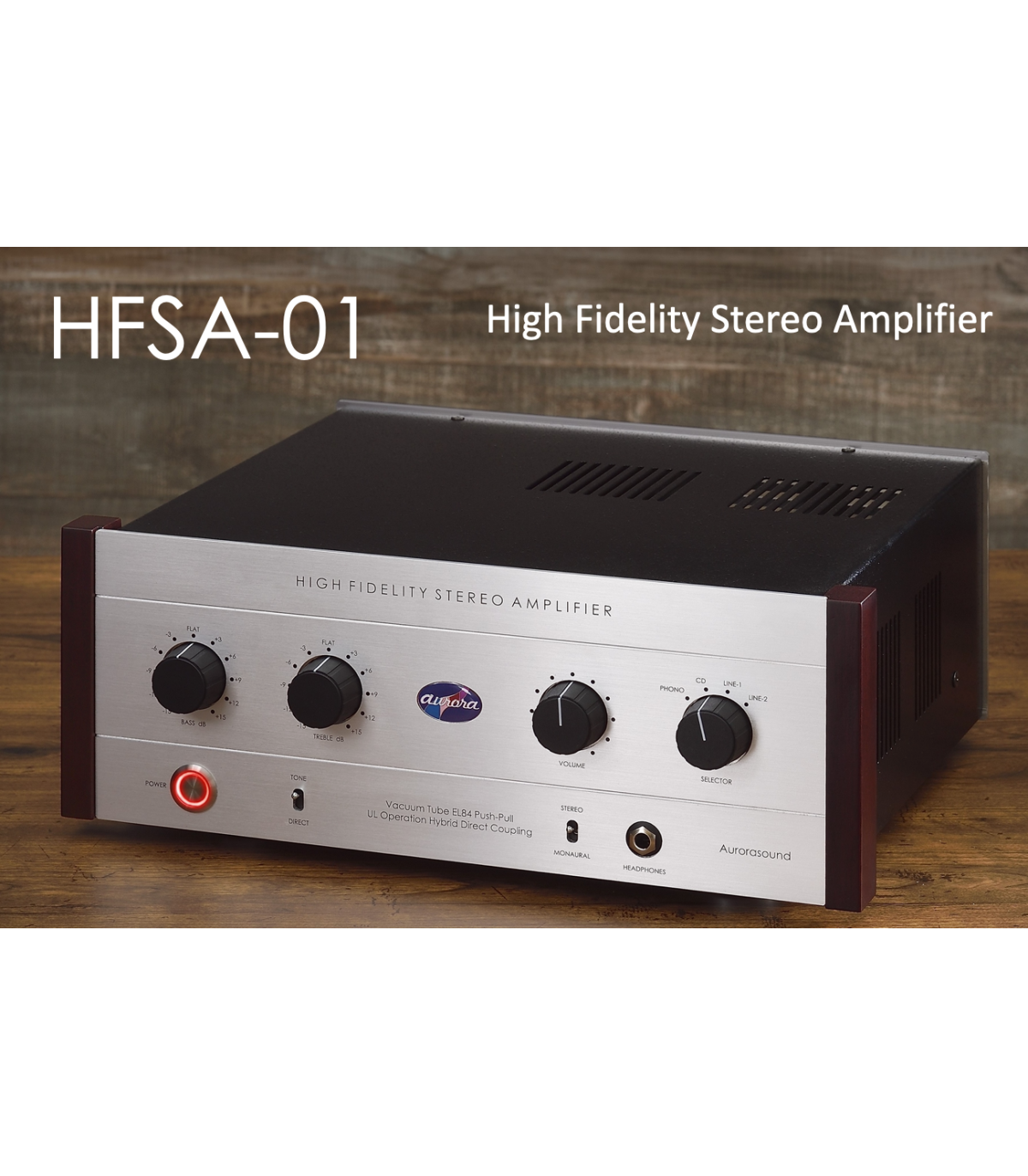 HFSA-01 is a hybrid pre-main amplifier utilizing the advantages of both vacuum tube and semiconductor. The tube EL84 delivers 14W + 14W power output. The model is equipped with bass and treble controls. The input stage has a built-in phono equalizer for MM-type cartridges, along with 3-channels of RCA unbalanced input terminals.