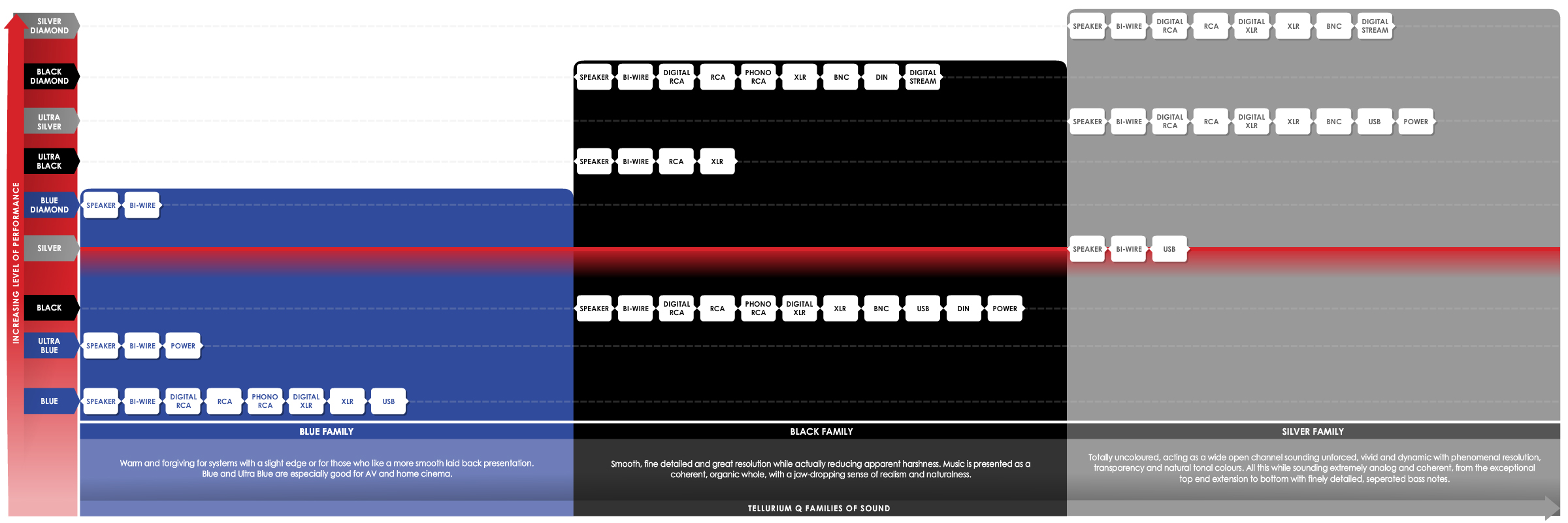Silver Family: Totally uncoloured, acting as a wide open channel sounding unforced, vivid and dynamic with phenomenal resolution, transparency and natural tonal colours. All tho awhile sounding extremely analog and coherent, from the exceptional top and extension to bottom with finely detailed, separated bass notes.