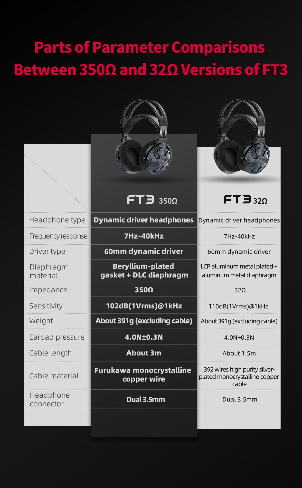 The FT3 was designed with great sound as the primary goal, and features 350Ω impedance to achieve that. Compared to lower impedance headphones, higher impedance headphones more effectively filter out noise to the listener resulting in a purer sound with higher signal-to-noise ratio performance. The voice coil is made of ultra-fine Japanese copper-clad aluminum only 0.035mm thick in diameter. This finer voice coil allows the driver to better and more quickly follow signals, has anti-interference capabilities, and allows for thunderous dynamics across a wide frequency response range.