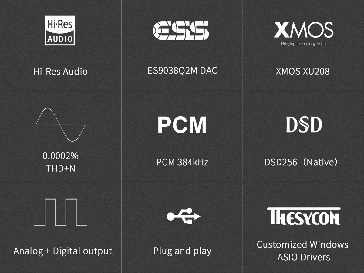 D10s uses XMOS XU208 for USB interface and uses customized driver which from Thesycon for better compatibility with high resolution audio file especially DSD native.