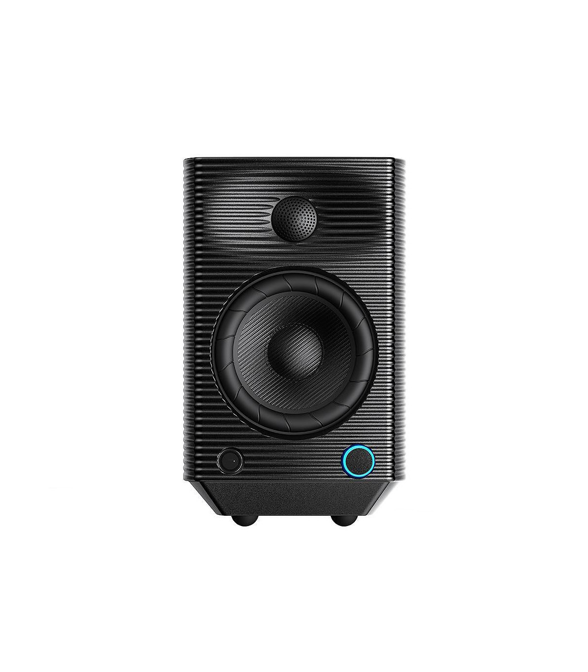 High-fidelity active desktop speakers featuring a 5.25-inch composite fibre woofer, 1-inch silk soft-dome tweeter, 120W total power output, XLR/RCA/AUX/Bluetooth 5.1 connectivity, and precise volume control. Constructed from aviation-grade aluminum for exceptional sound clarity and zero resonance.