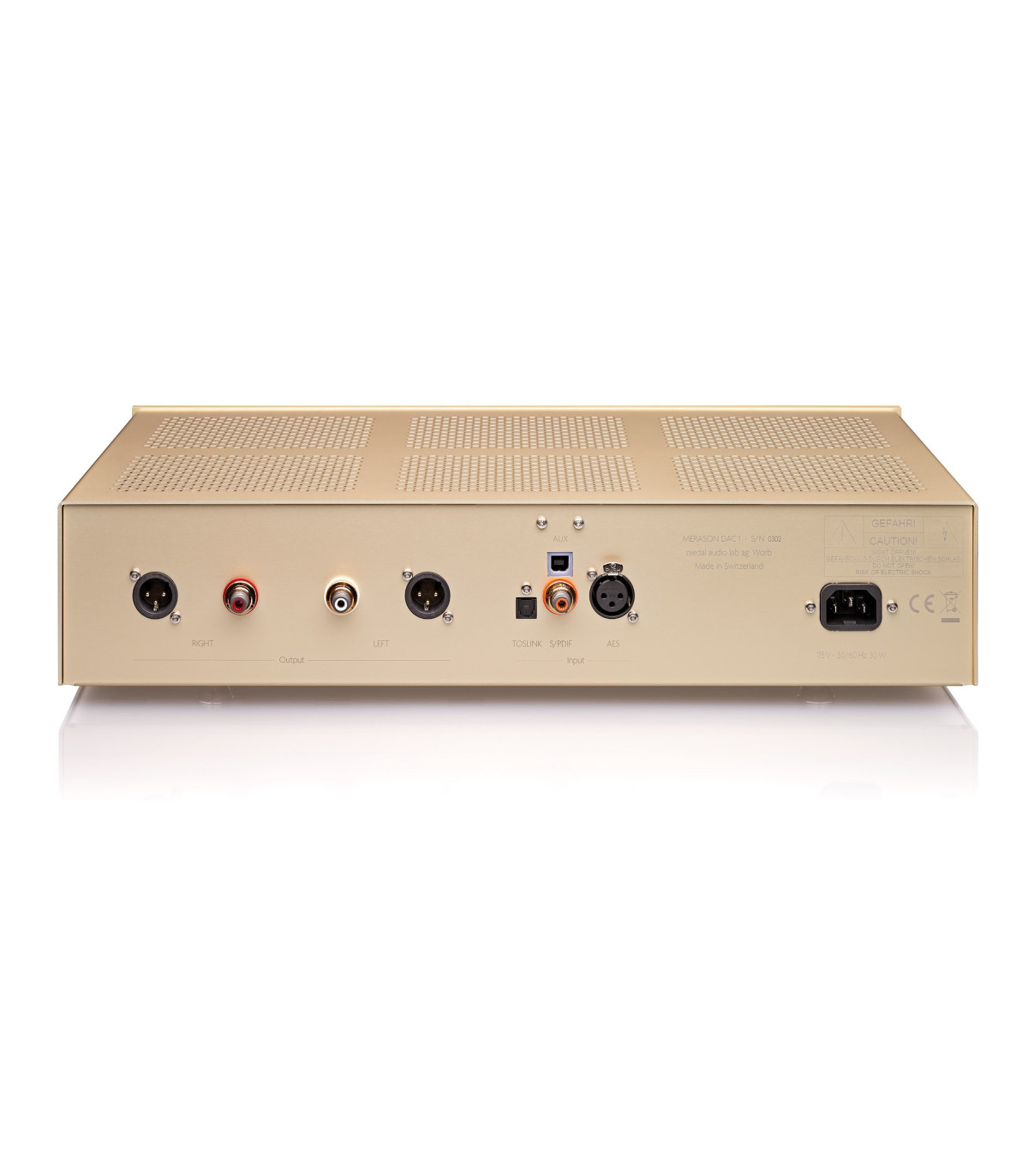 The manufacturing of the chassis, front panel, control knobs, screen printing, component placement, assembly, testing, and final inspection is carried out exclusively in Switzerland.