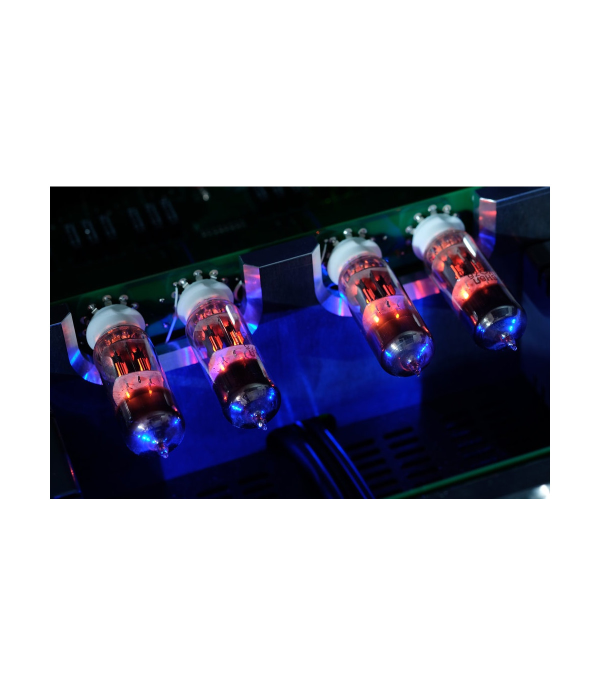 The gain stage uses the 6H6P super tube mounted in a billet compartment for the voltage gain, this tube performs exceptionally well in audio applications and its associated frequencies with true high fidelity and low distortion. A series of three transformers feed the power supply, the design actively shunt regulates the valves high voltage supply. The voltage rails ability to both sink and source current allows it to be both stable and quiet. Output is provided by the renowned Lundahl transformers.