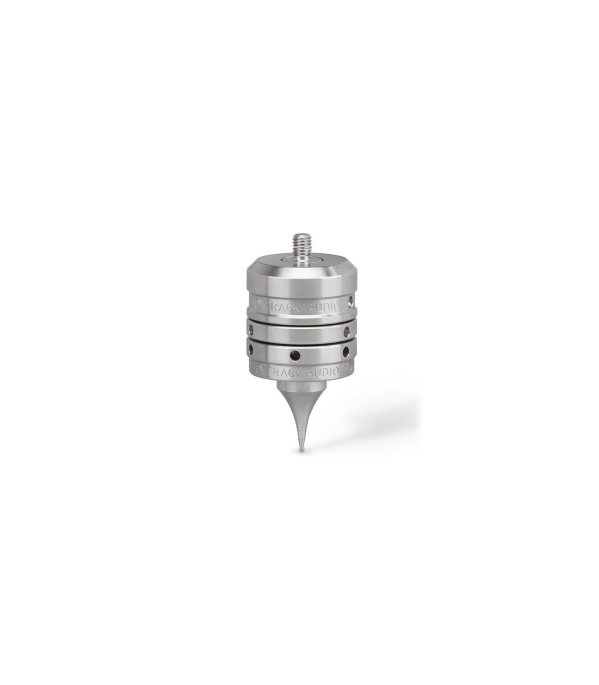 Track Audio's Solid Feet (formerly Coupled Isolation Feet) are big, heavy solid, steel spikes. They have a >150Lb rating each. A set of four holds over 630 lbs. They make a huge difference under speakers, racks, amp-stands, etc. They come standard with a set of Track's stainless cone cups. Solid Feet are the most massive adjustable after-market spikes we've ever seen. Weighing in at just under a pound each, these are not just big, they're cleverly engineered as well. Solid Feet are a stunning upgrade for any component.