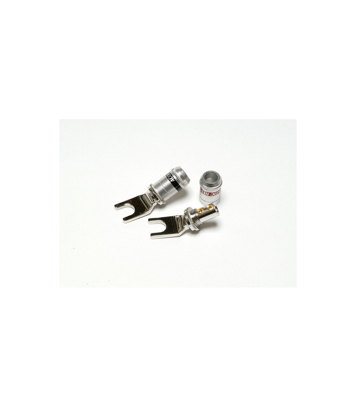 Banana plug RYG-1 (4 in a set). Conductivity performance raised to the extreme. World's first vibration control structured epoch-making spade plug.