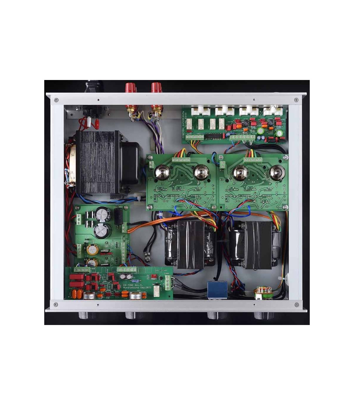Sia i trasformatori di uscita che quello di alimentazione e sono progetti custom di Aurorasound, realizzati da una compagnia giapponese. Il circuito impiega condensatori e resistenze di alta qualità attentamente selezionati.