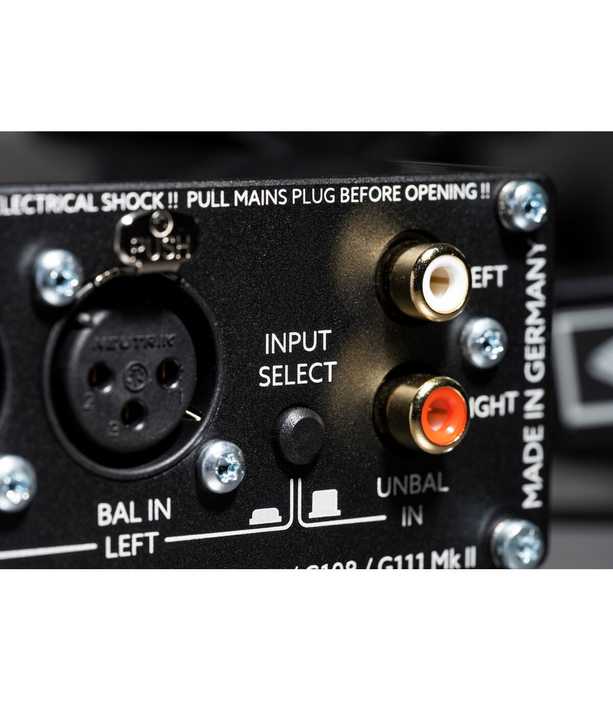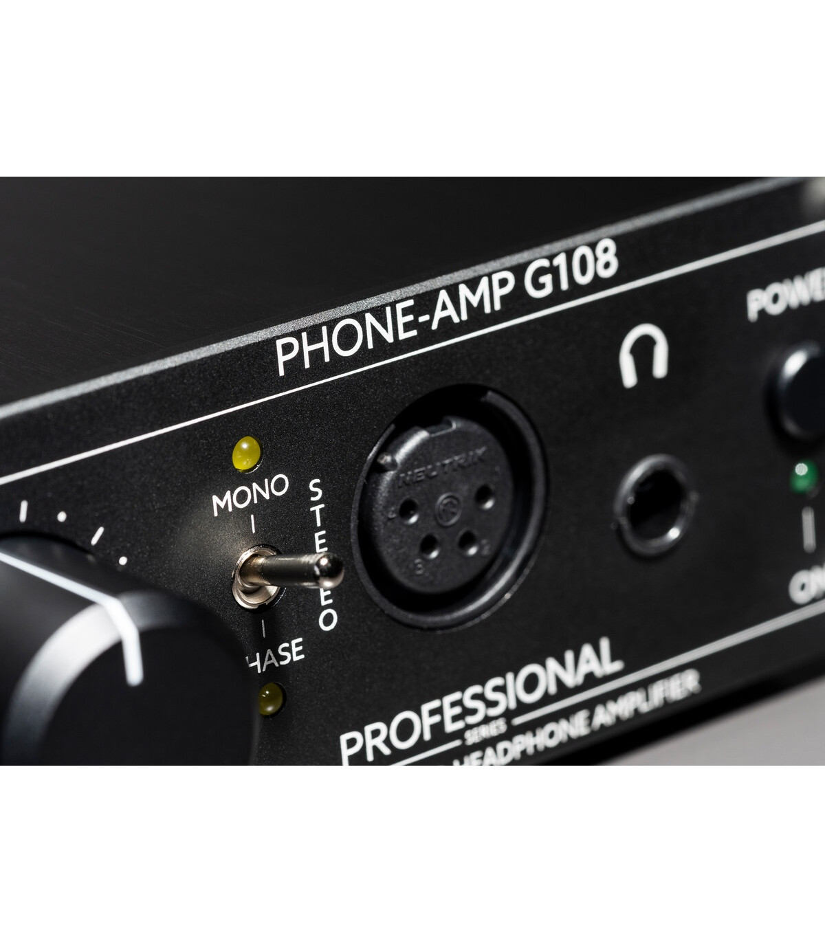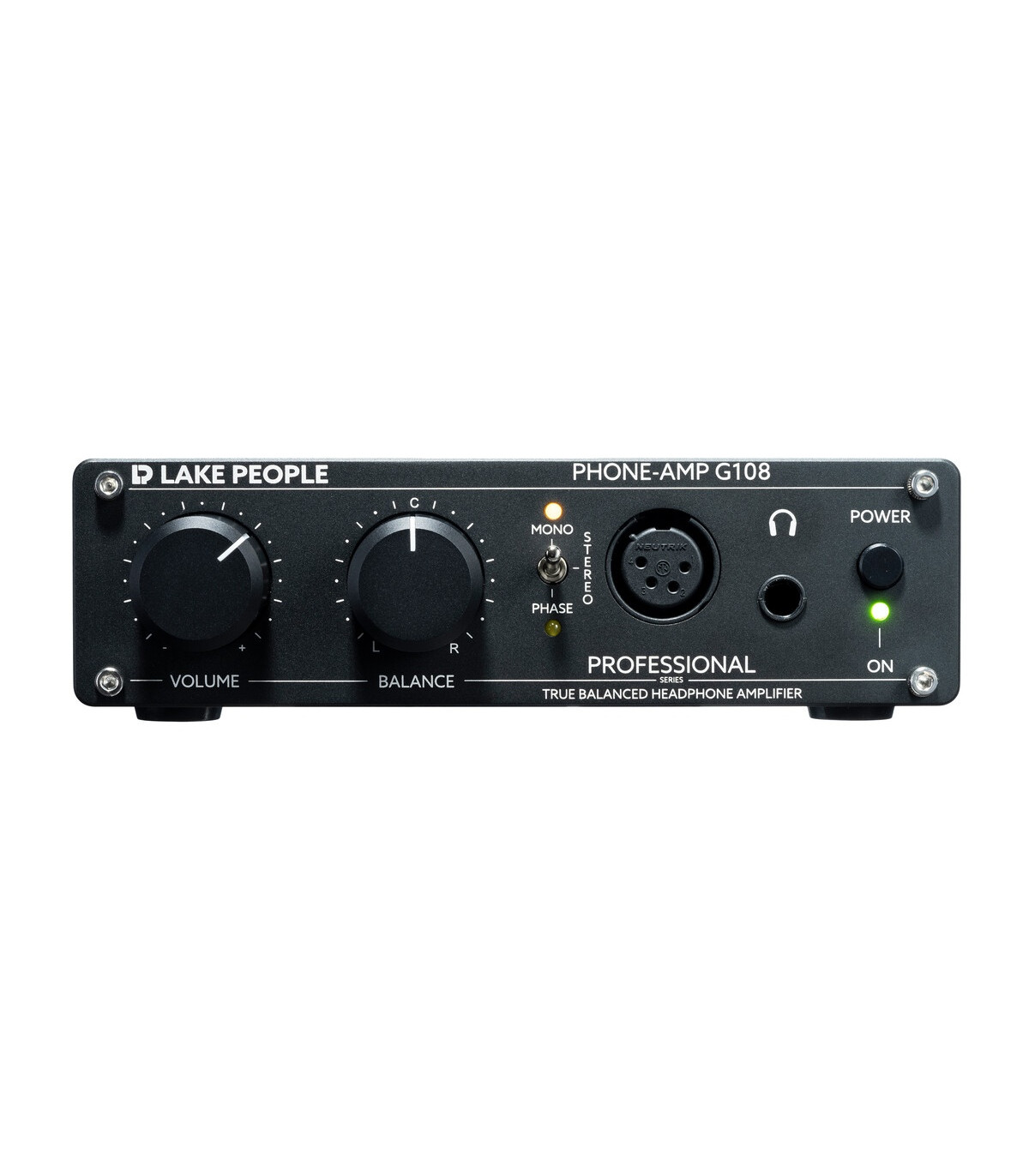 Il Lake People G108 è stato progettato per offrire una qualità audio incontaminata. Le sue funzionalità sono state appositamente studiate per soddisfare i requisiti degli ambienti di mixaggio e mastering. Il pannello posteriore offre ingressi per segnali bilanciati o sbilanciati, che possono essere attivati tramite un interruttore, in modo che i dispositivi sorgente possano rimanere collegati senza influenzarsi a vicenda. Oltre alle uscite per cuffie bilanciate o sbilanciate, il pannello frontale presenta manopole da 25 mm fresate dal solido alluminio per regolare con precisione di volume e bilanciamento. Un dip switch cambia il segnale in uscita da stereo a mono. Il canale sinistro può anche essere invertito nella sua polarità per identificare facilmente possibili errori di fase.