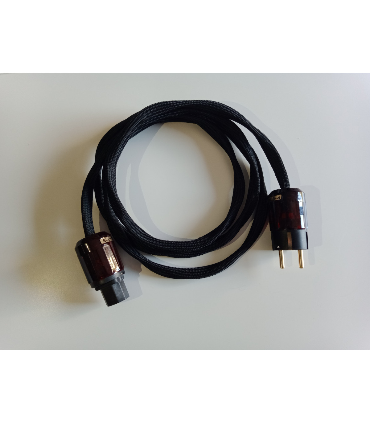 Cavo di alimentazione terminato Schuko/IEC basato sul conduttore Duelund DCA16GA 600V in rame multifilare stagnato in guaina esterna di polycast, lunghezza 1,80m