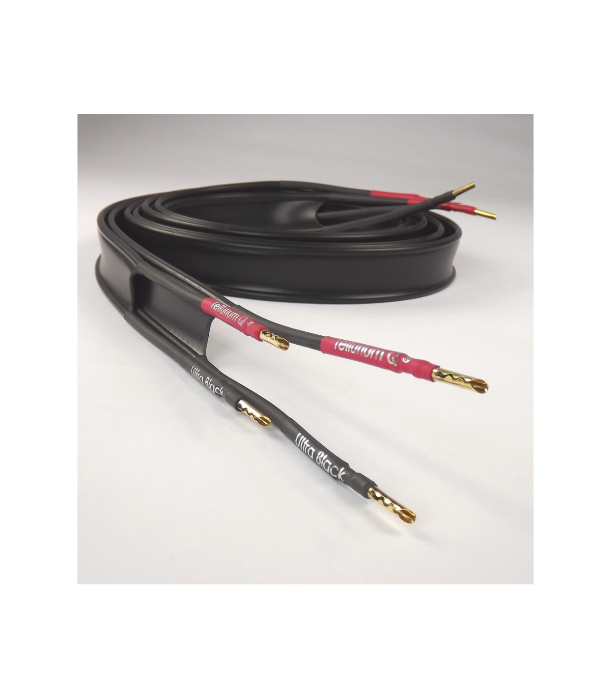 Cavo di potenza Tellurium Q modello Ultra Black, prezzo al metro, per la coppia coppia terminata in fabbrica con banane a massa ridotta al rame-berillio.