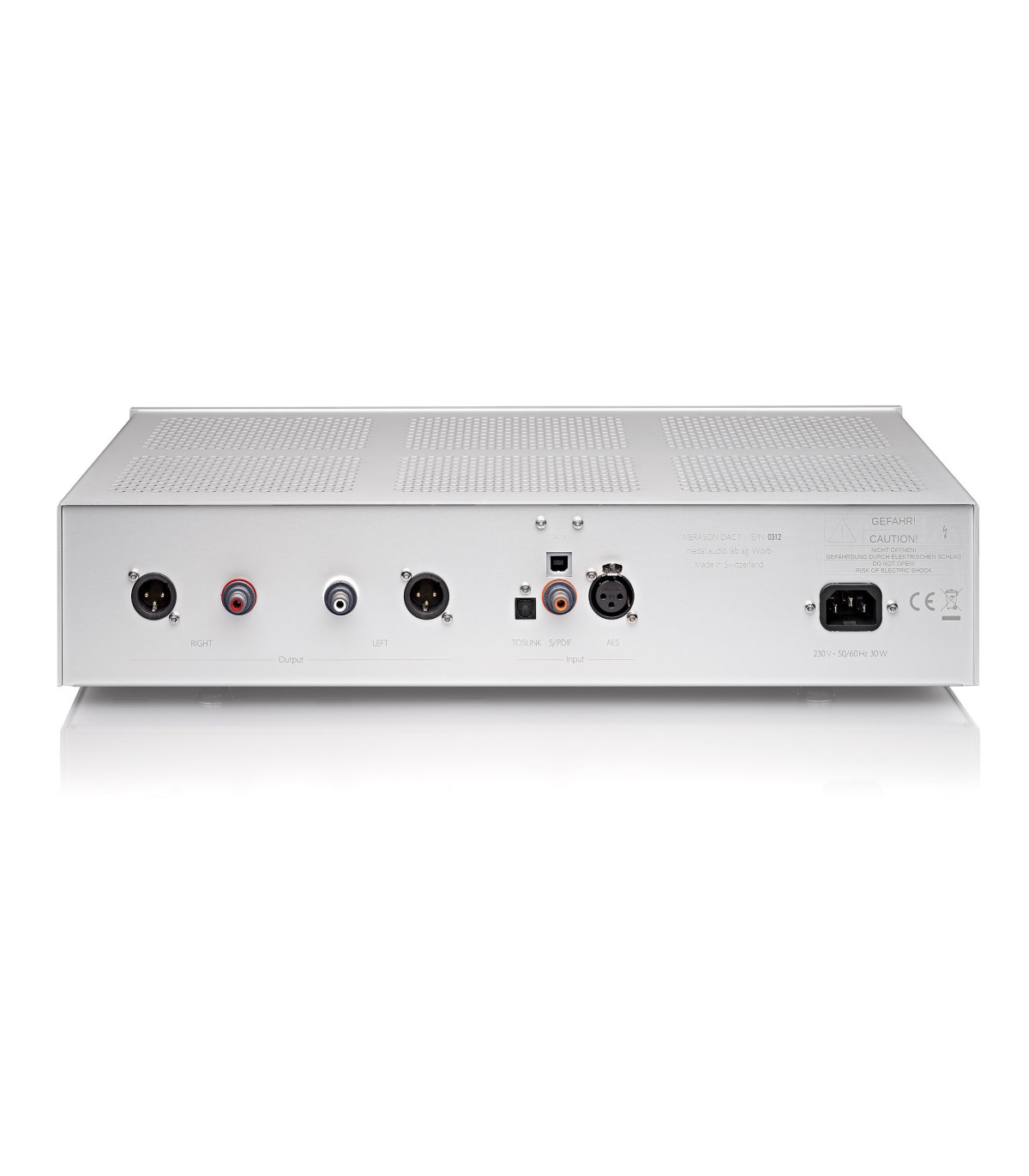 Il DAC1 Mk II dispone di un ingresso USB, uno RCA, uno Toslink e uno AES. L’ingresso USB si basa sulla tecnologia Amanero e garantisce un segnale musicale a basso jitter grazie a due oscillatori di precisione, che viene poi isolato galvanicamente tramite componenti isolatori capacitivi. Anche i segnali provenienti dagli altri ingressi sono isolati galvanicamente e de-jitterizzati tramite trasformatori e condensatori. Questo assicura che nessuna interferenza esterna possa influenzare il segnale sensibile.