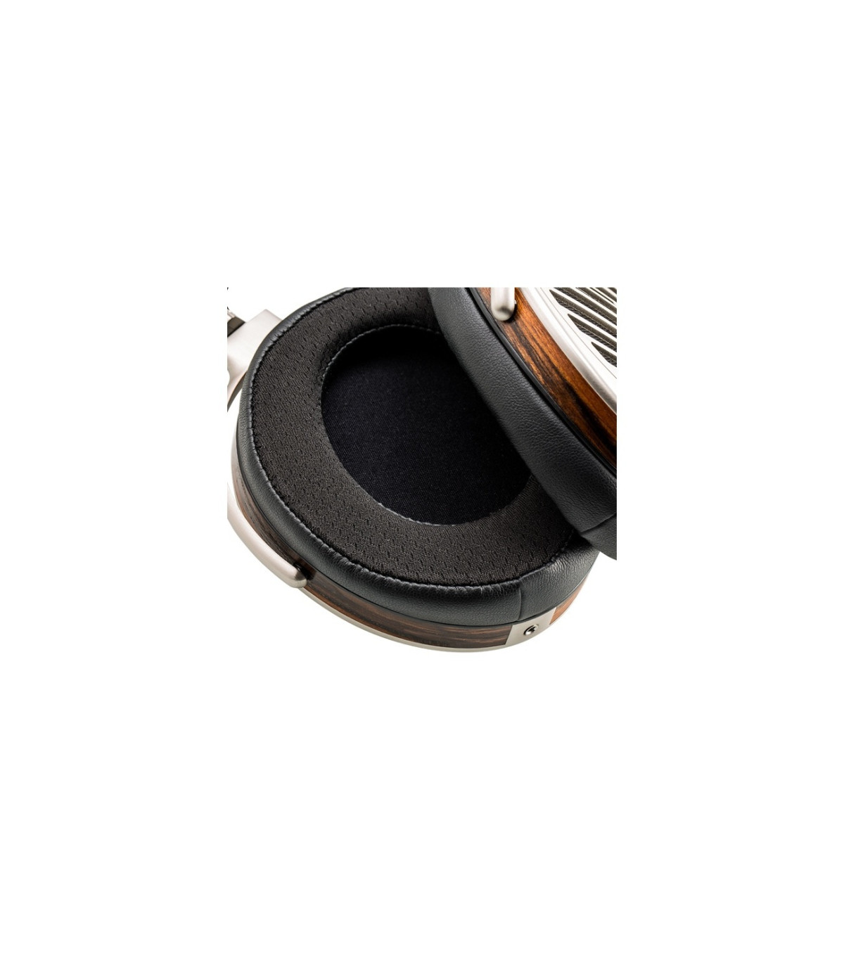 I padiglioni delle SUSVARA sono stati appositamente modellati in una forma unica che segue il profilo dell'orecchio umano. Allo stesso modo, i pad a contorno smussato si conformano alla tua testa per un comfort aggiuntivo. Finalmente, l'equilibrato headband combina una speciale lega metallica con raffinata pelle di vitello scamosciata, per formare una resistente struttura ad arco. I piccoli fori sulla banda in pelle contribuiscono a dissipare il calore, mentre la sua leggerezza non appesantisce il peso totale dell'intera cuffia, sorprendentemente ridotto – le SUSVARA pesano soltanto 450 grammi.