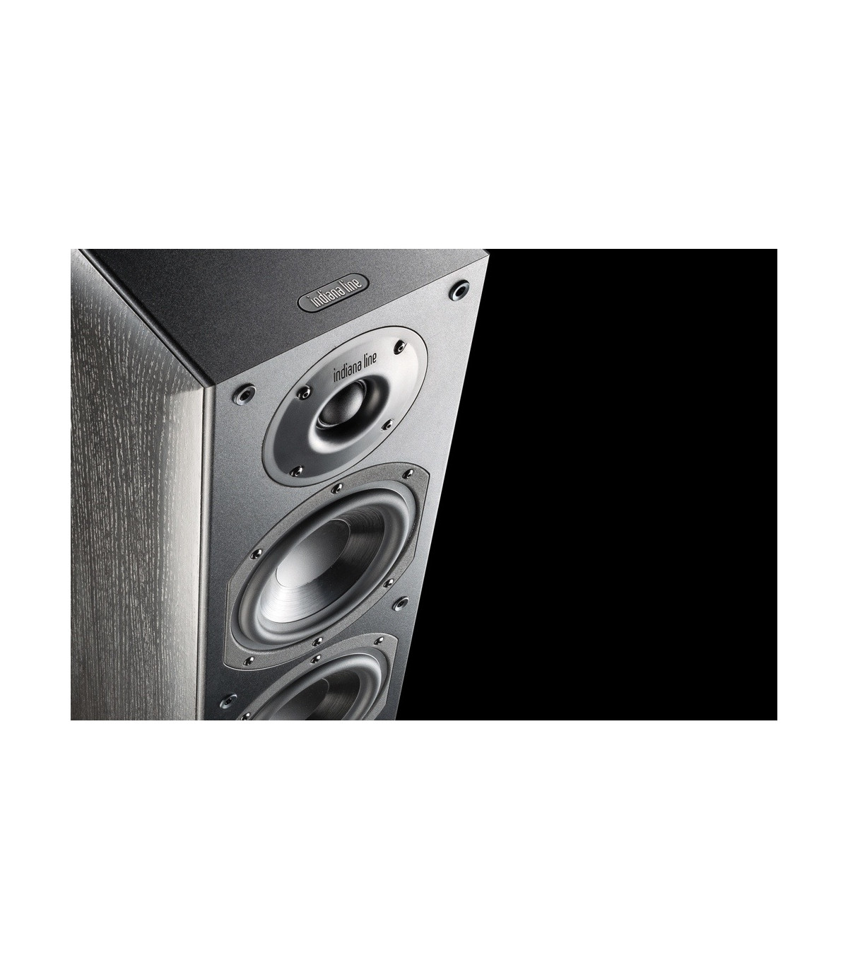 Diffusore acustico da pavimento equipaggiato con woofer e medio basso da cinque pollici con cono in polipropilene iniettato e tweeter al neodimio con cupola in seta trattata e camera di risonanza posteriore a ventilazione radiale. Sono notevoli la capacità dinamica e la quantità di basse frequenze.