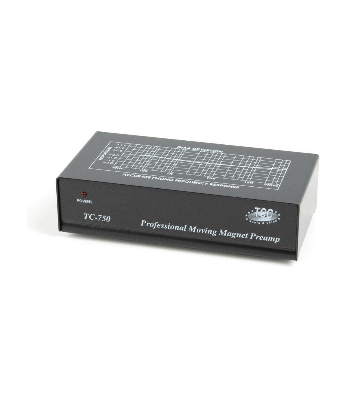 Il preamplificatore Phono TCC TC-750 include lo stesso stadio phono utilizzato nel famoso T-Preamp TC-754, dotato di un eccezionale rapporto qualità-prezzo, costruito interamente a discreti, adatto per collegare un eventuale giradischi dotato di testina tipo MM.