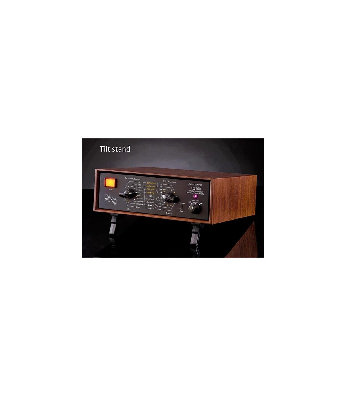 L'alloggiamento dell'EQ-100 è progettato con una custodia in legno in modo da integrarsi armoniosamente con qualsiasi apparecchiatura vintage. Per facilitare la visualizzazione e il funzionamento, vengono inclusi dei supporti inclinabili pieghevoli.